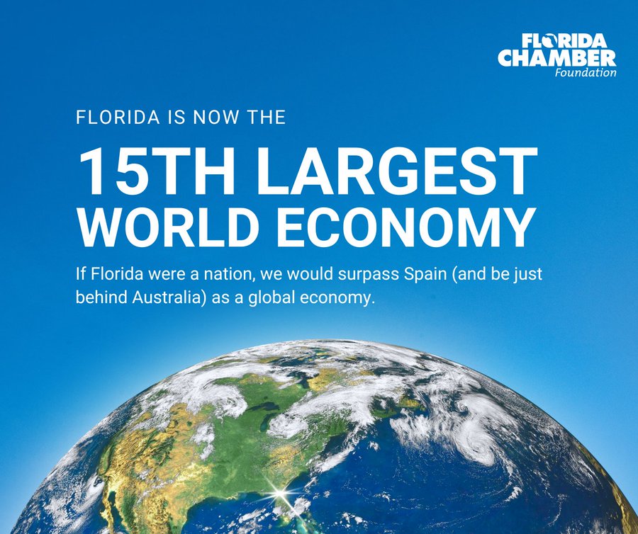 If you’ve lived or worked in Florida for a while, you know of its ongoing success story. The Florida Chamber Foundation recently announced that the Sunshine State, if it were a nation, would now rank as the 15th largest economy in the world, with a gross domestic product exceeding $1.7 trillion. The Foundation has set a long-term goal of making Florida a top 10 global economy by 2030. The state has now surpassed Spain and stands just $25.5 billion behind Australia.